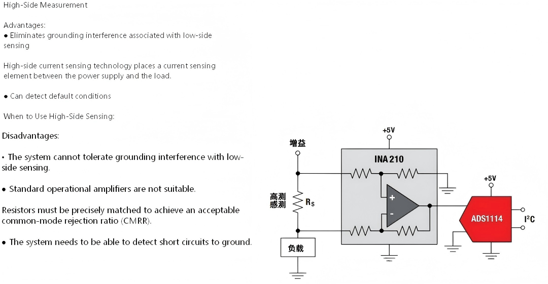 In high-side sensing, the shunt resistor is placed between the power supply and the load.