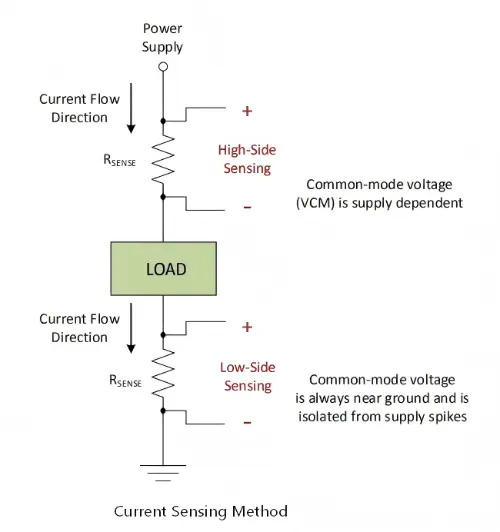Depending on the placement of the shunt resistor in the circuit, current sensing can be classified into low-side sensing and high-side sensing.